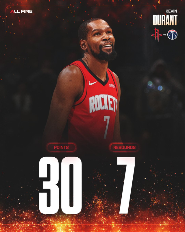 电竞赛事-连续三场30+队史首人!杜兰特1点成历史第二 37岁助火箭更上一层楼|凯文·杜兰特|阿尔佩伦-申京|休斯敦火箭队|华盛顿奇才队|篮板_新浪体育_新浪新闻